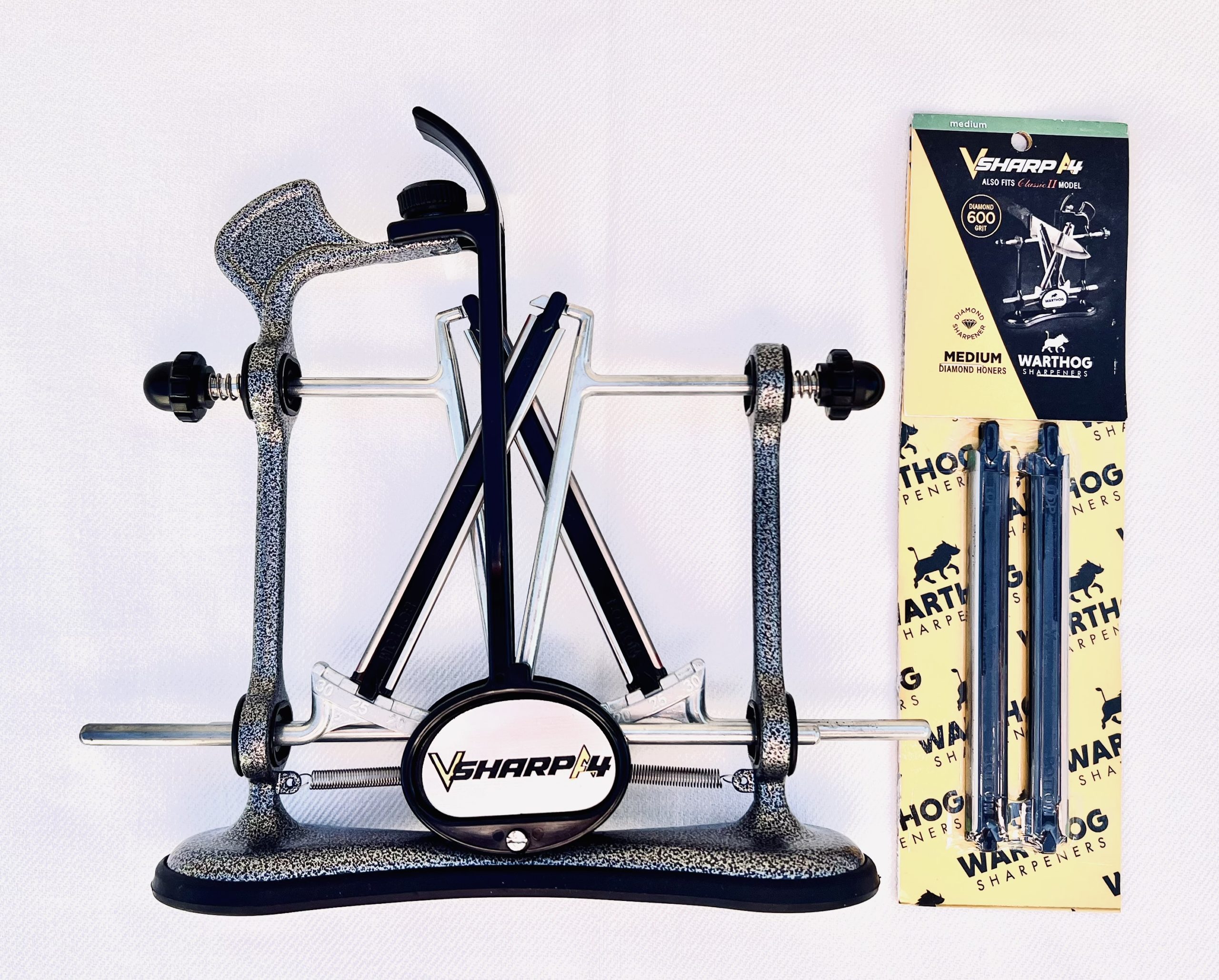 Ostřič V-Sharp A4 Gun Metal Grey – kladívkově tmavě šedý + brusné tyče V-Sharp A4/Classic II Grit 600.