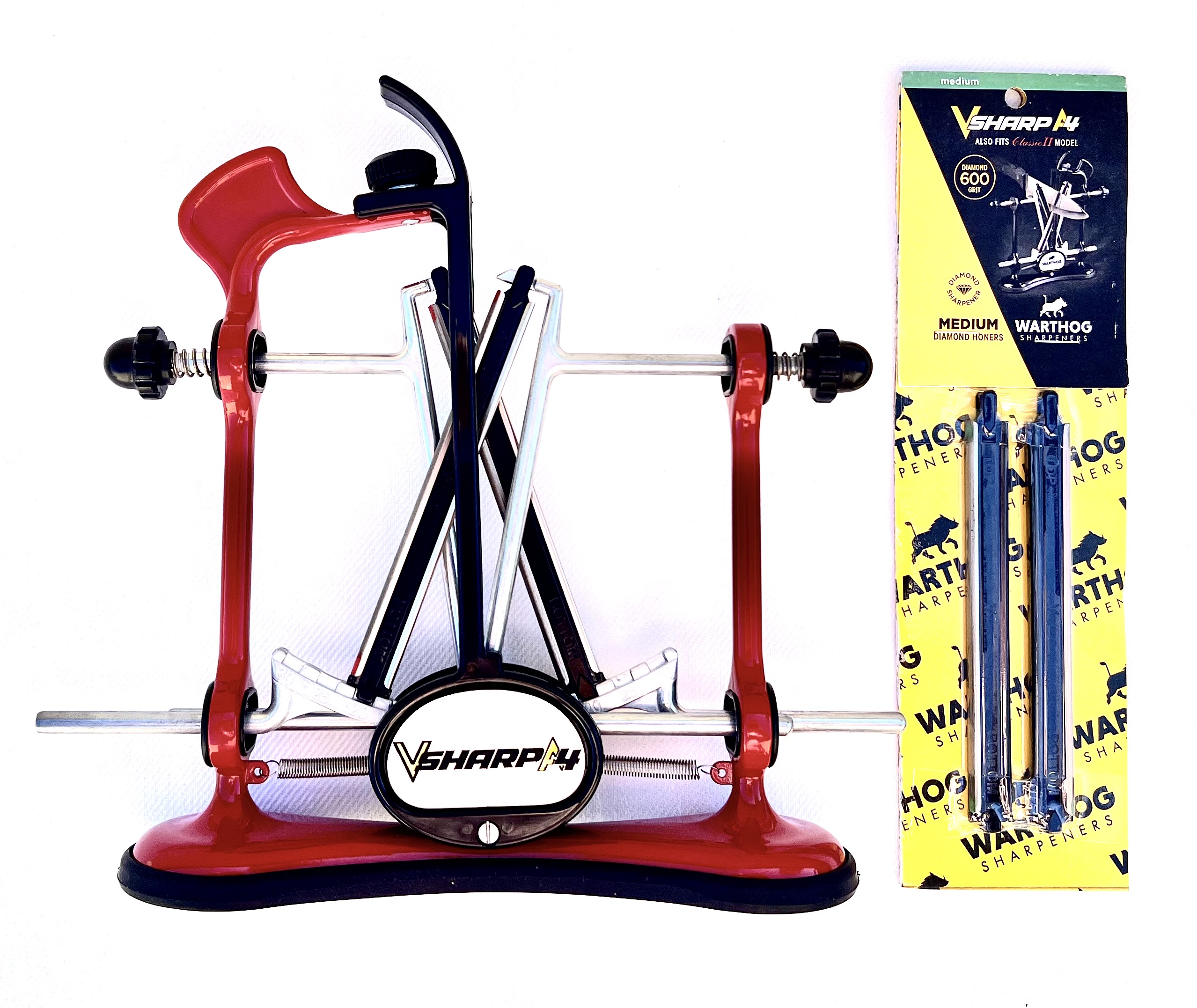 Ostřič V-Sharp A4 Red – červený + brusné tyče V-Sharp A4/Classic II Grit 600.